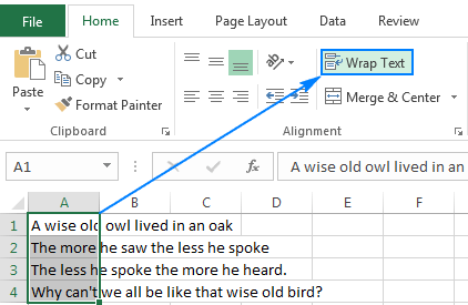 If you ever tried to put a lot of text in a small cell in Microsoft Excel, you know that only enough text to fill the cell in its current size will show. If you want to show it all, you can select the cell(s) and select “Wrap Text” in the home tab of the toolbar.